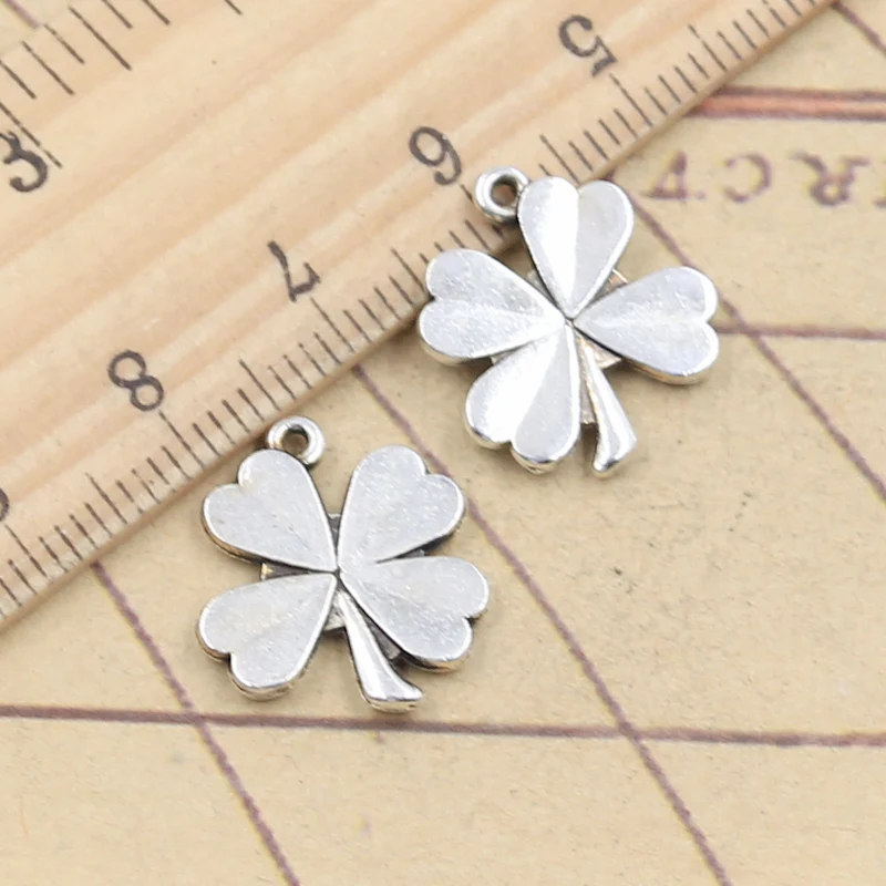 Lot de 20 breloques porte-bonheur avec trèfle à quatre feuilles, 17x15mm, couleur arge...