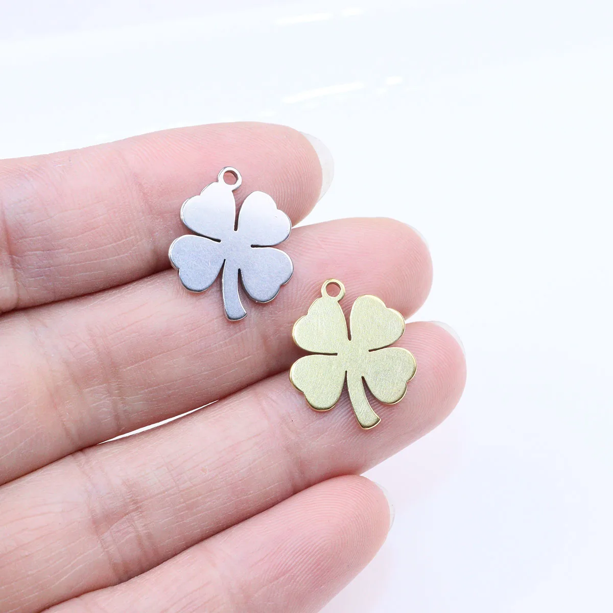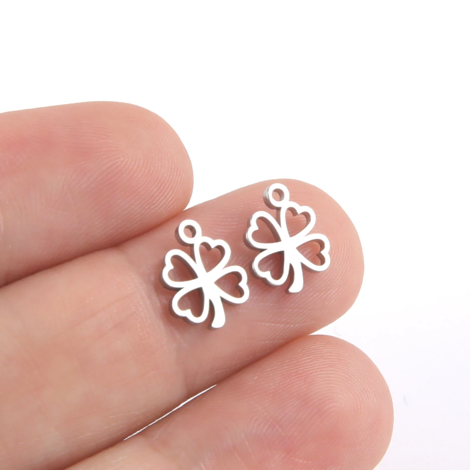 EUEAVAN 20 pièces/lot breloques trèfle porte-bonheur breloques en acier inoxydable pou...