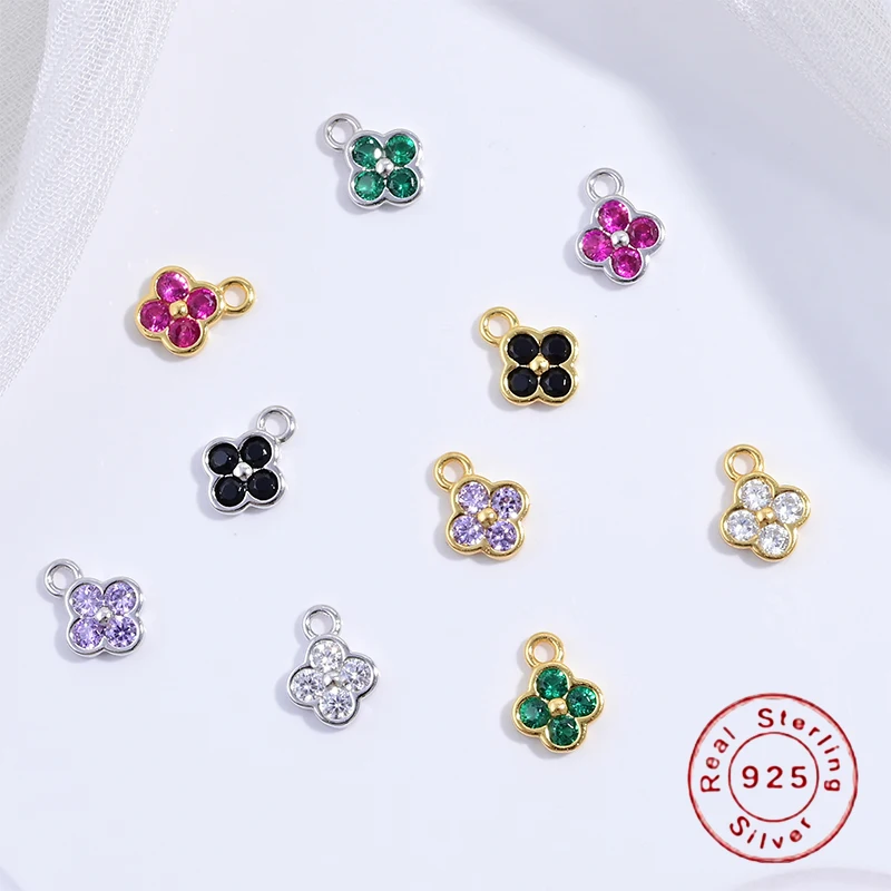Breloques trèfle en argent Sterling S925, Zircon coloré, pour bricolage, Bracelets, co...