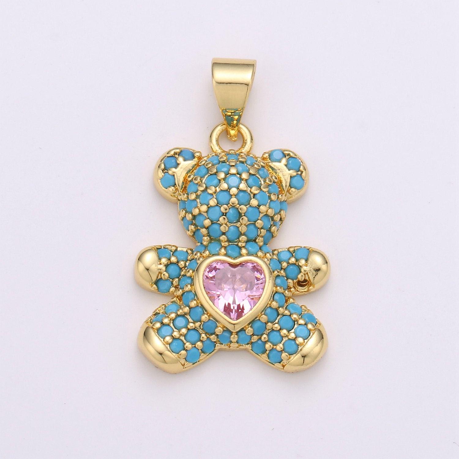 Pendentif en or avec breloques en forme d'ours en peluche / porte-c...