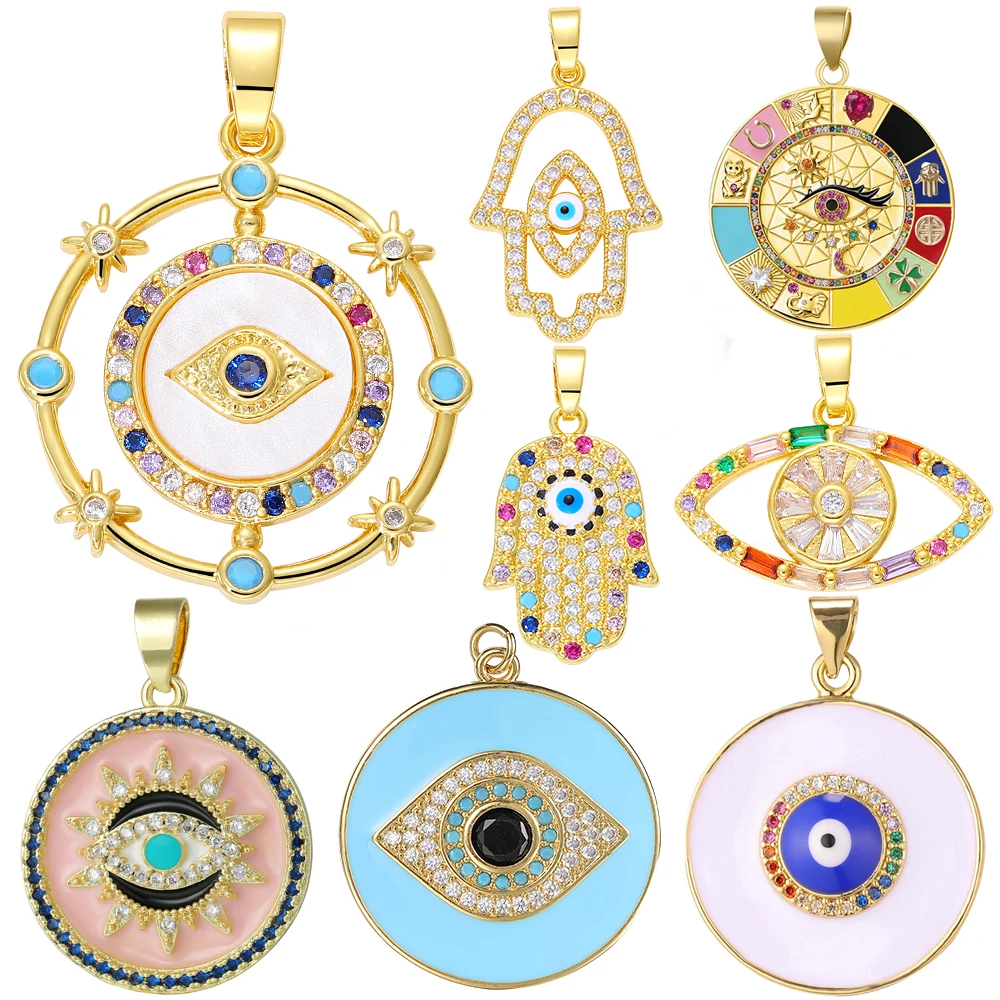 Juya fait à la main 18K véritable plaqué or Hamsa Fatima main grec mauvais &oel...