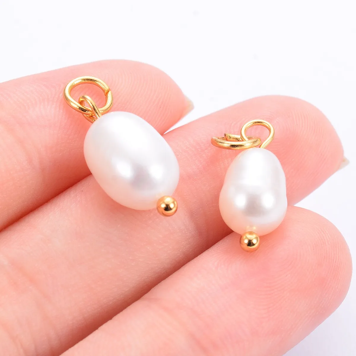 Breloques en perles naturelles, pendentif en acier inoxydable, perl...