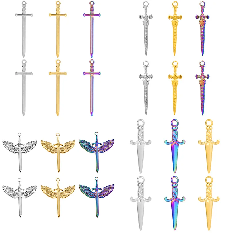 Vintage Vibasin Lunar Phase Sword Charms, Norse Cross Moon, PmotPunk Gothic Witch, Winged Sword, Mag...