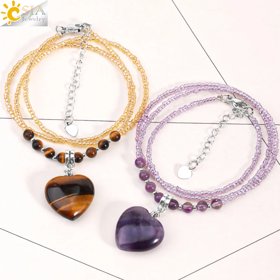 CSAlbanPink Quartz Choker for Women, Natural Stone Coussins Charm Pendant, Crystal Beads Necklace, L...