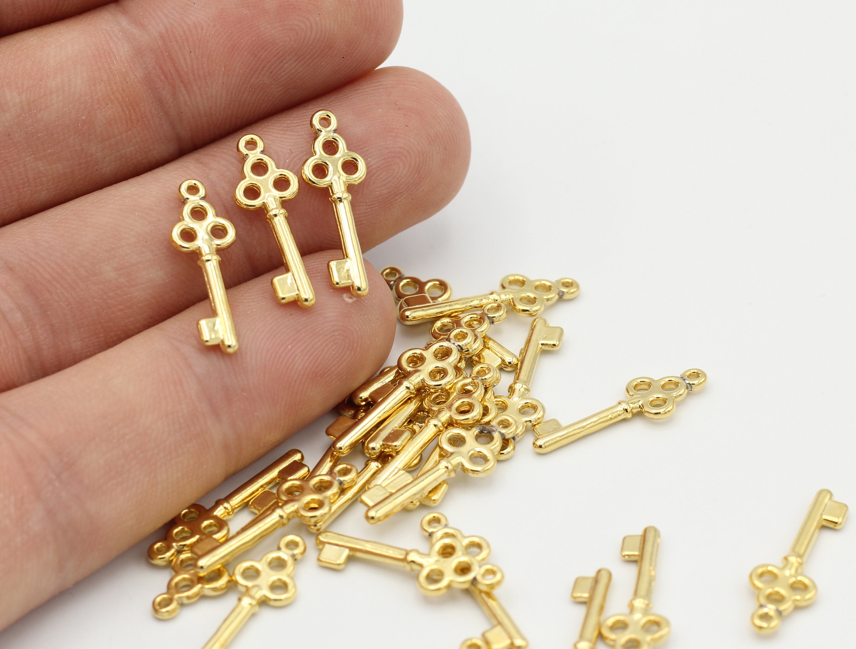 Gold Tiny Key , 5 Pcs 24k Shiny Gold Plated Key Charms , Key Pendant , Boucles plaquées or , ...