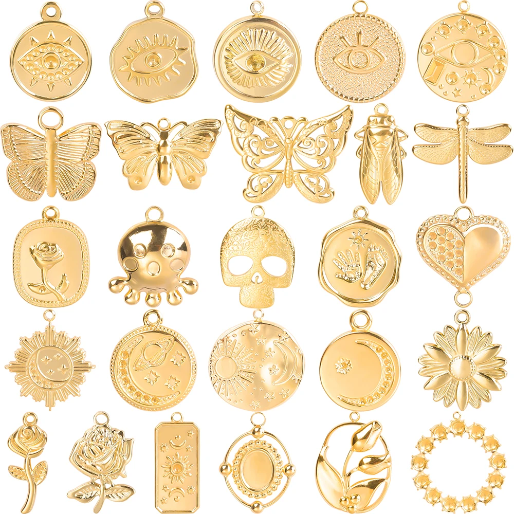 Breloques papillon couleur or, 5 pièces/lot, Ojo Turco, breloques en acier inoxydable pour la...