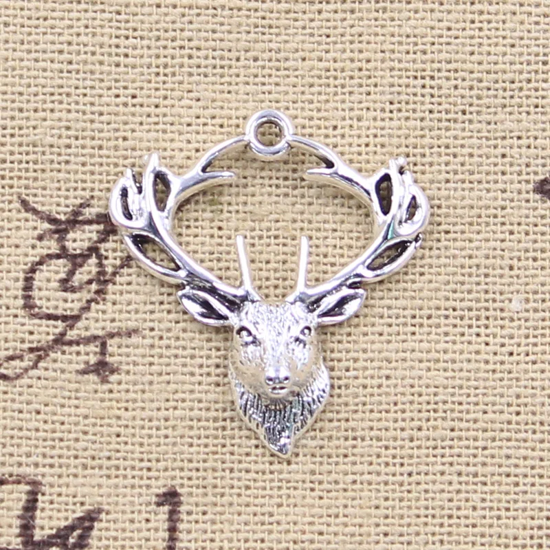 20 pièces breloques décoration Buck tête de cerf 28x25mm Antique couleur argent ...
