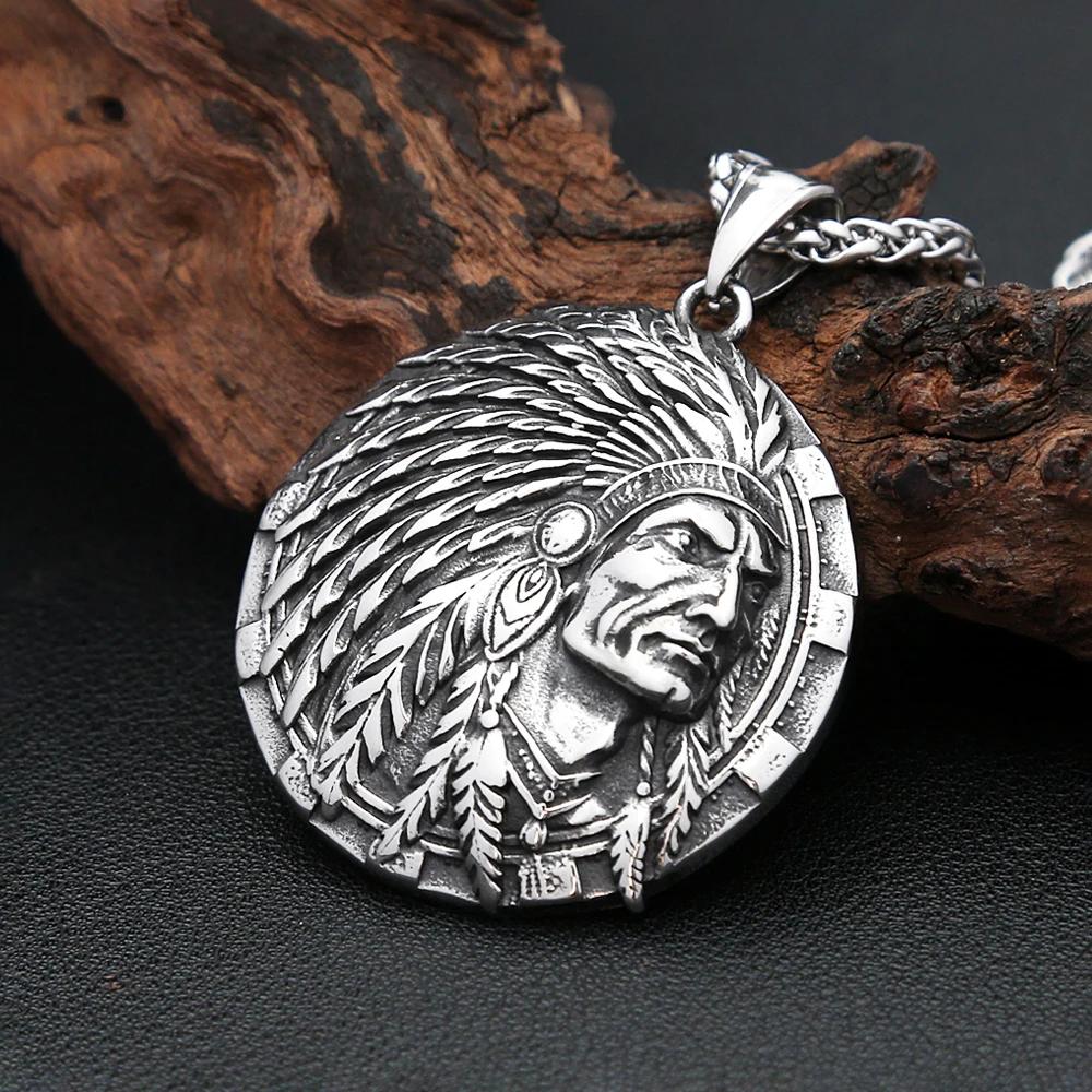 Pendentif tête de chef indien classique Vintage pour hommes et femmes, en acier inoxydable, Pu...
