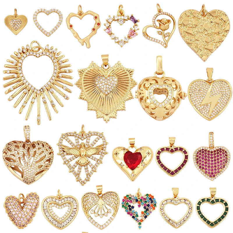 Pendentif à breloque classique en forme de cœur d'amour, en zircone cubique, creux en f...