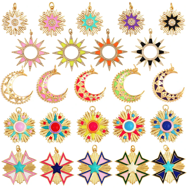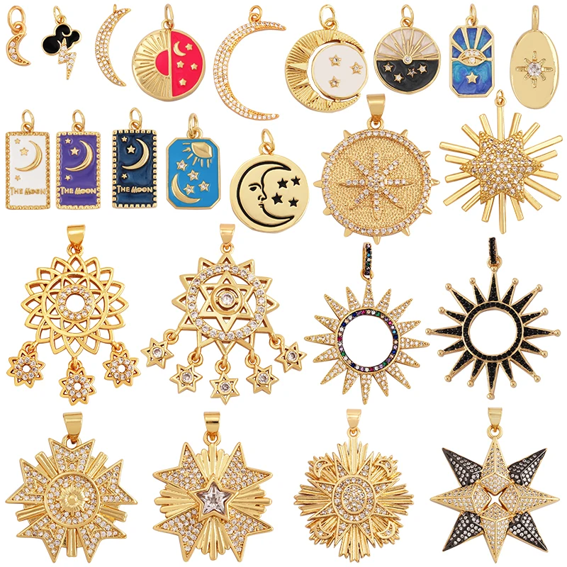 Pendentif à breloque en émail CZ or clair soleil et lune, cubique, contre-indiqu&eacut...