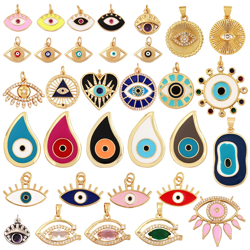 Pendentif à breloque mauvais œil, plaqué or v&e...