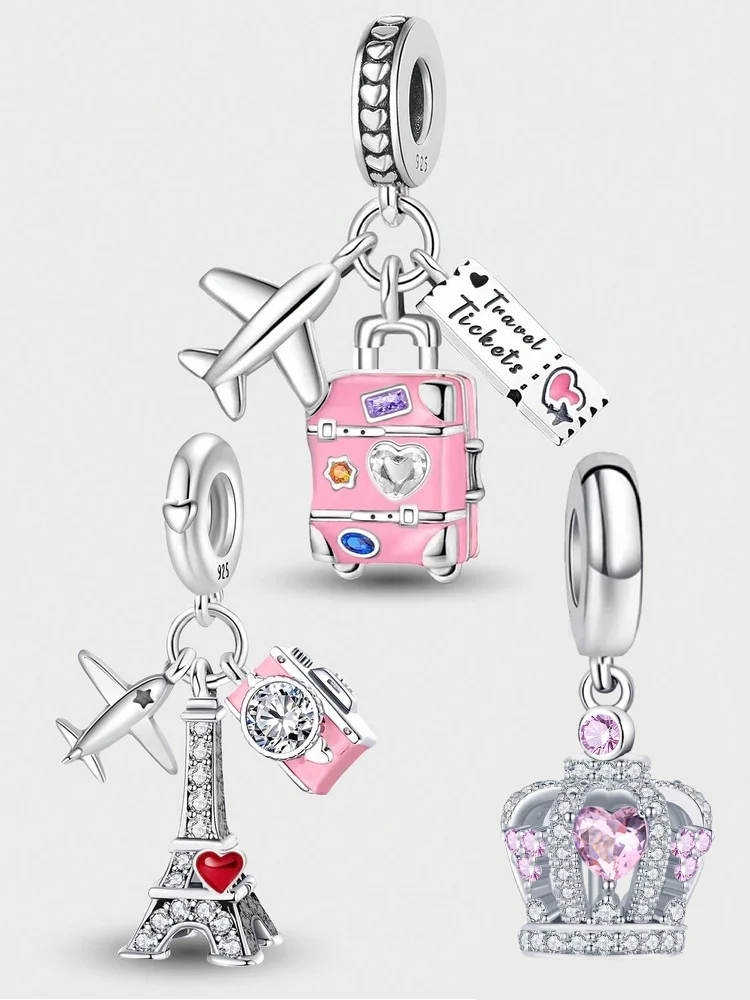 925 argent Sterling fleur rose voyage maman sœurs tour caméra pendentif à breloq...