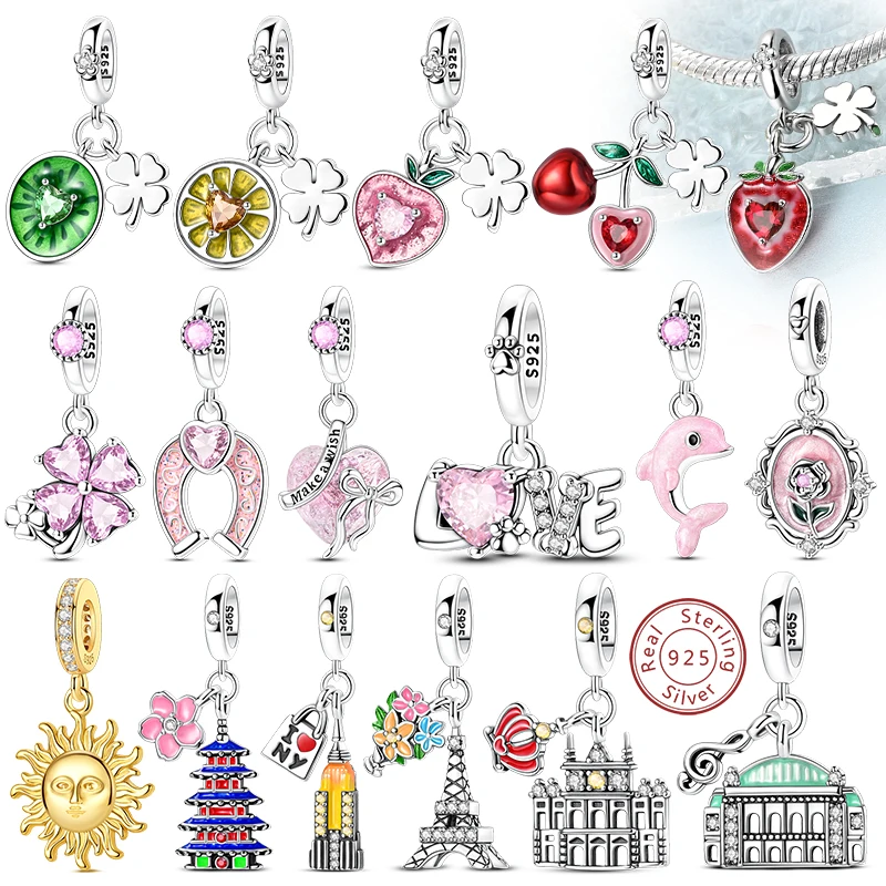 Nouveau 925 breloques en argent Sterling perles pendentif cerise citron coeur tour breloque pour Bra...