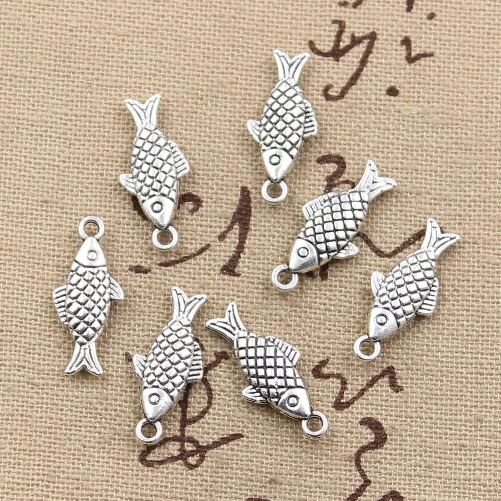 30 pièces breloques poisson Double face 20x8mm Antique Bronze couleur argent pendentifs faisa...