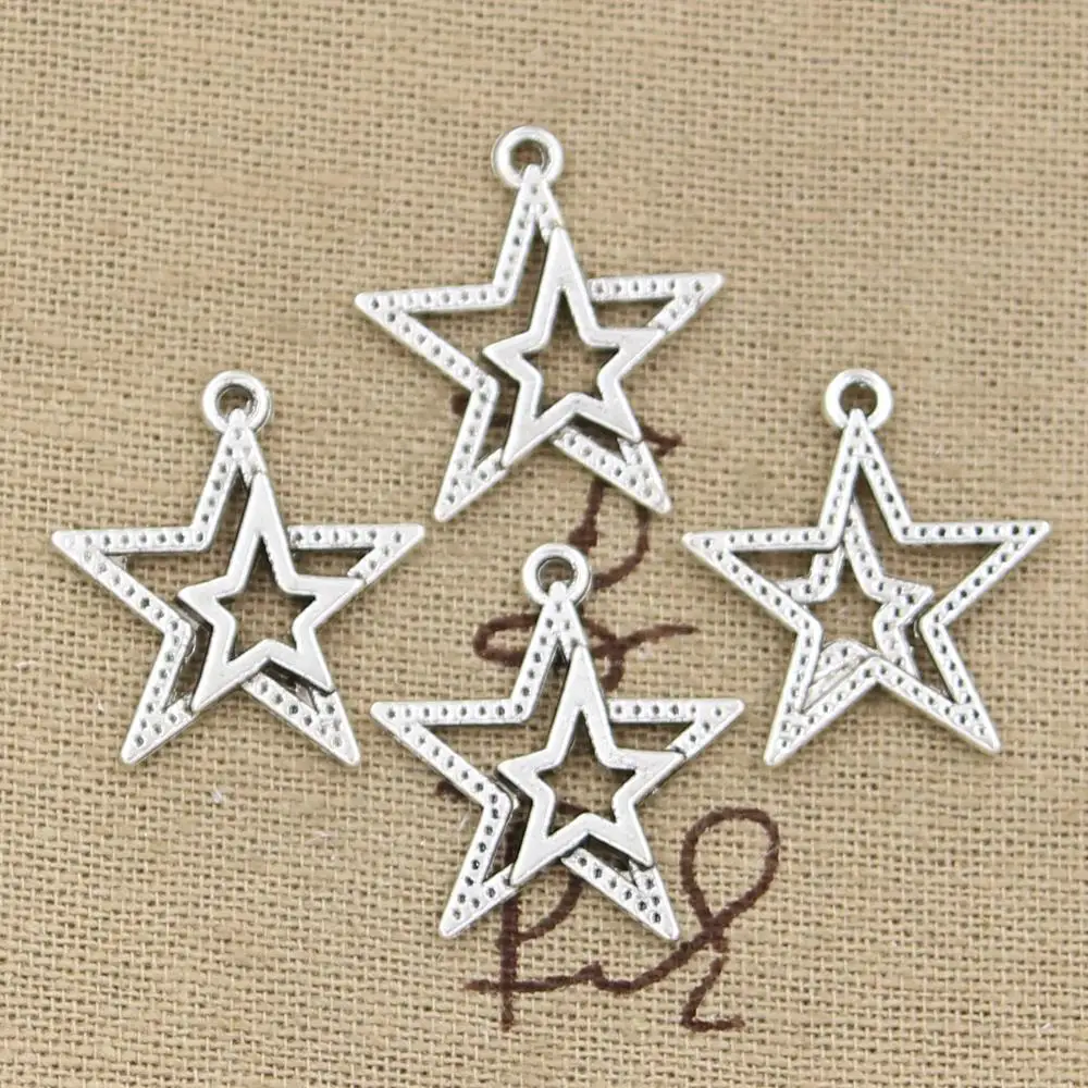 30 pièces breloques étoile pentagramme 23x20mm Bronze Antique argent couleur pendentif...