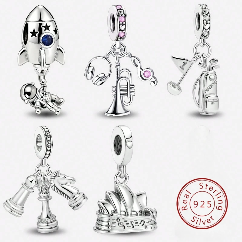 Breloques Perles en Argent Sterling 925, Motifs Appareil Photo, Golf, Musique, Compatibles avec Brac...