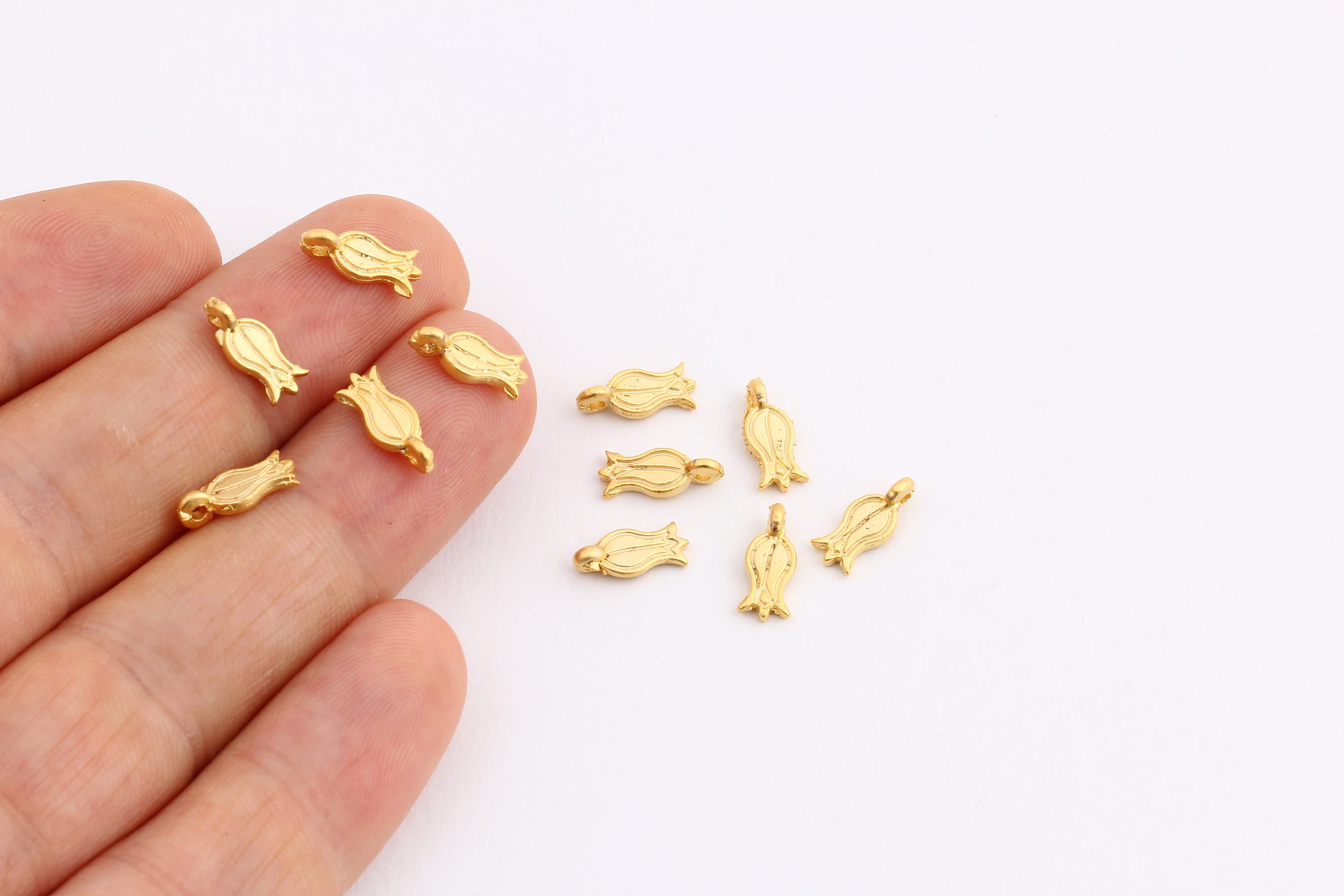12 Pcs Mini Tulip Charms , 24k Matt Gold Plaqué Tiny Tulip C...