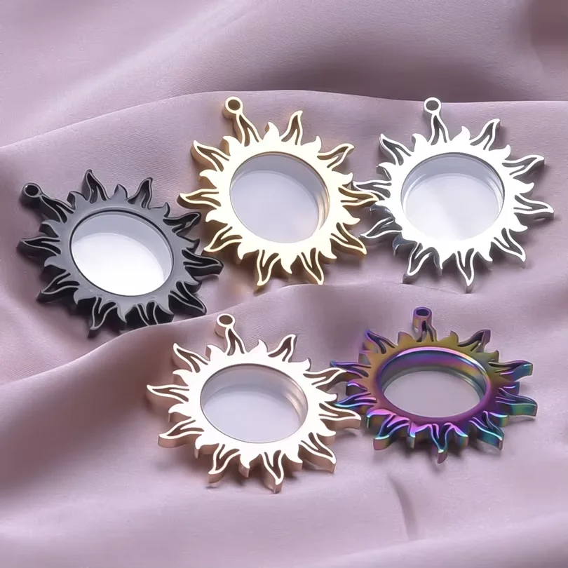 1pc acier inoxydable soleil Relicario Photo médaillon pendentif amulettes flottantes mé...