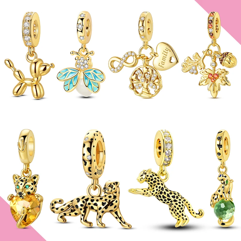 2025 nouvelle série d'or 925 breloques en argent Sterling étincelant plaqué or ...