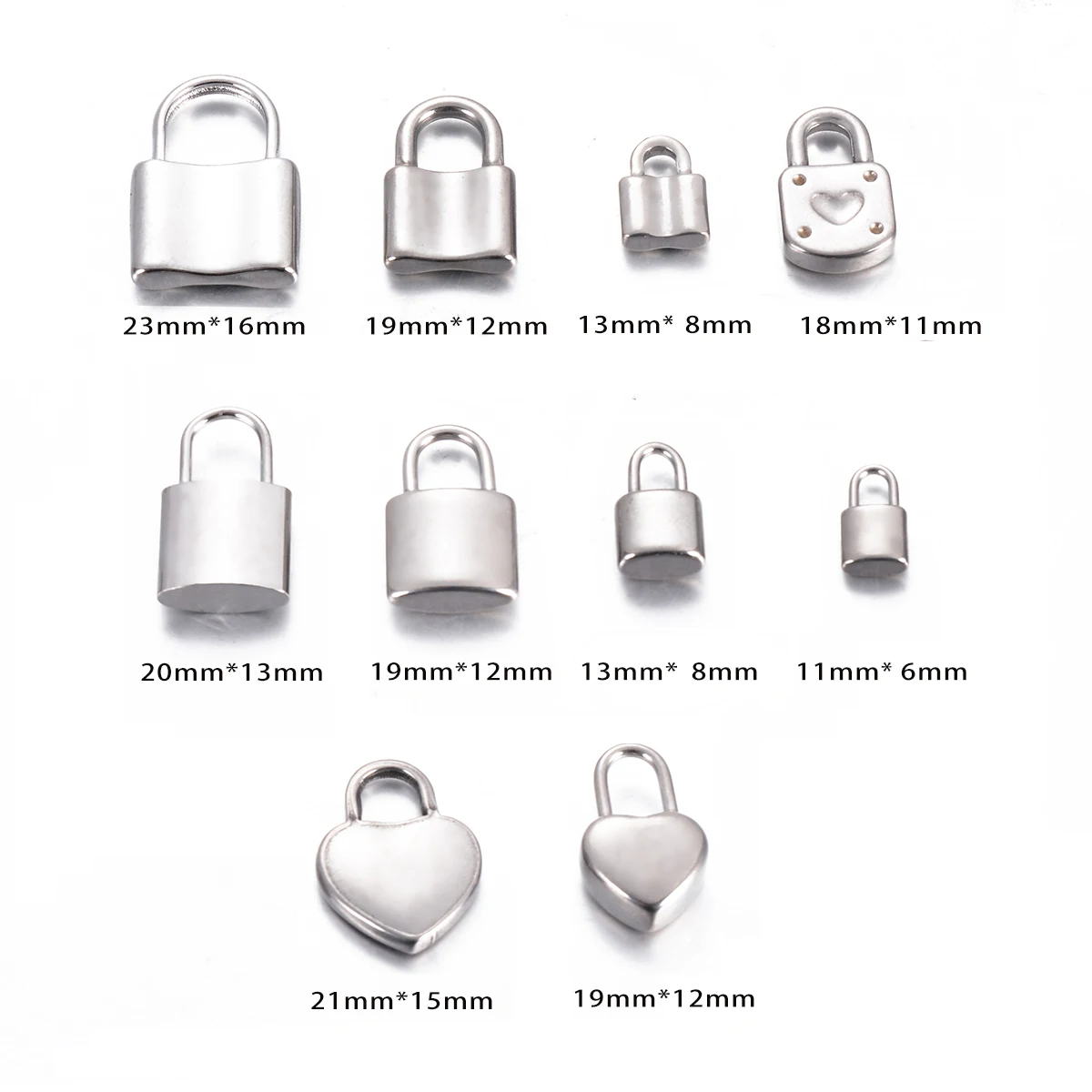 En gros 10 pcs/lot en acier inoxydable serrure breloque ajustement collier Bracelet cadenas bricolag...