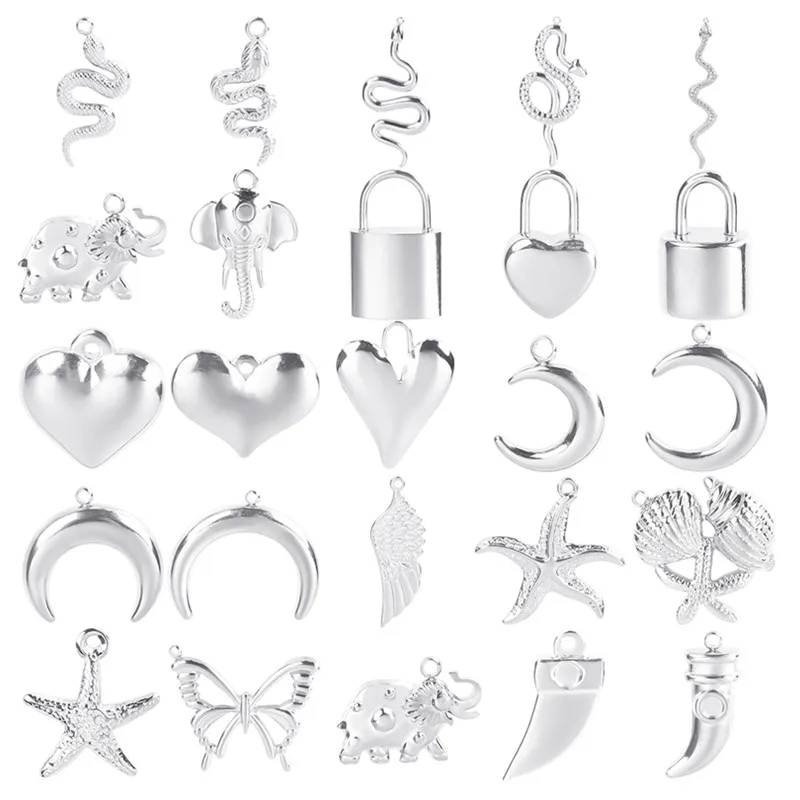 5 pièces couleur acier éléphant Serpent serpent breloque coeur pendentif breloq...