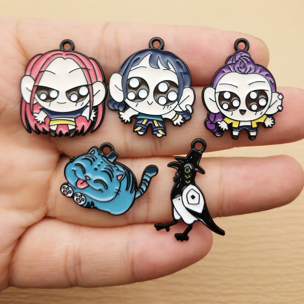 Breloques de fille de dessin animé, pour la fabrication de bijoux, collier en émail, b...