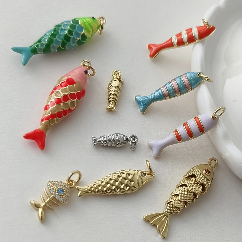 Breloques bohème en émail de poisson mignon pour la fabrication de bijoux, accessoire ...