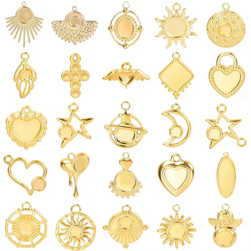 Nouveau 8 pièces/lot en acier inoxydable plaqué or Cabochon réglage pendentifs ...