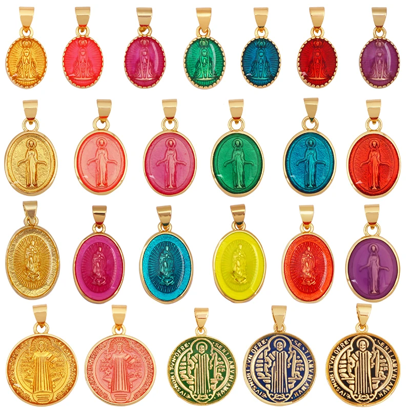 Pendentif vierge marie en alliage coloré catholique, 2 pièces, médaillon, pende...