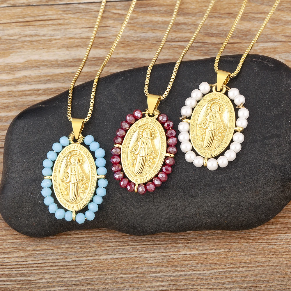 QMHJE vierge marie pendentif à breloque collier ras du cou f...