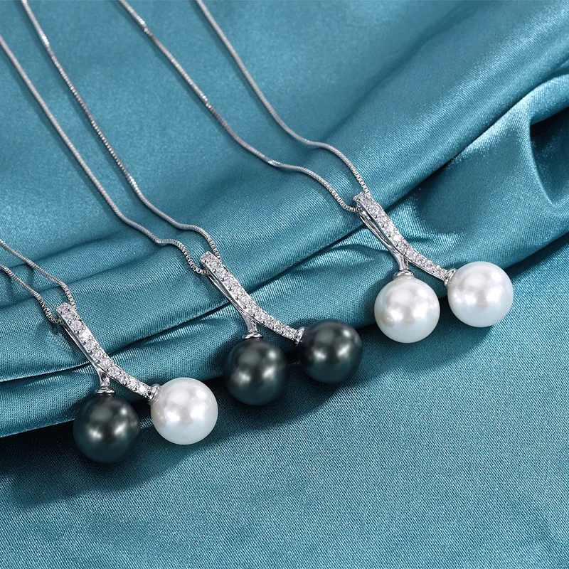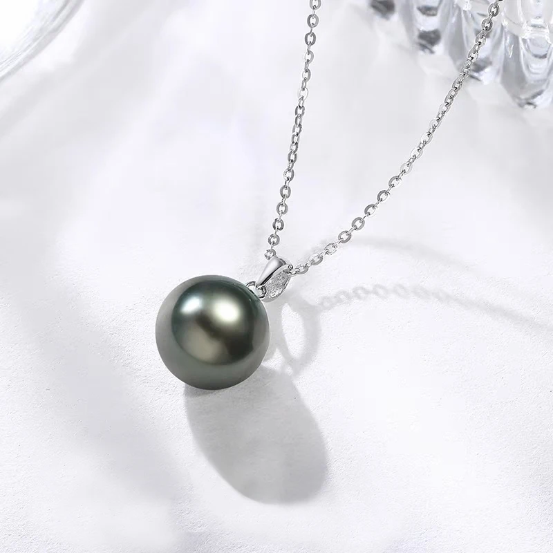 Pendentif en perles de tahiti noires naturelles pour femmes, pendentif en argent 925 à la mod...