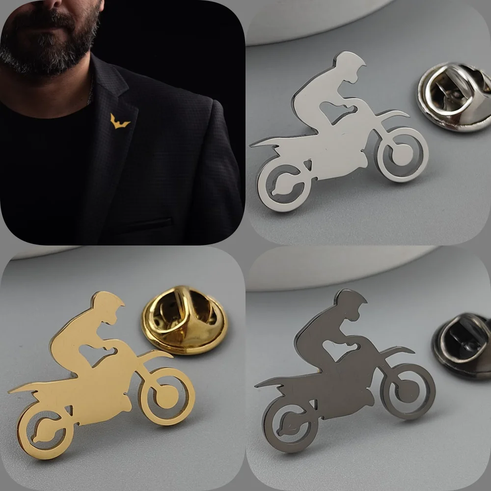 Badge de moto en acier inoxydable plaqué or de style punk à la mode, épingle de...