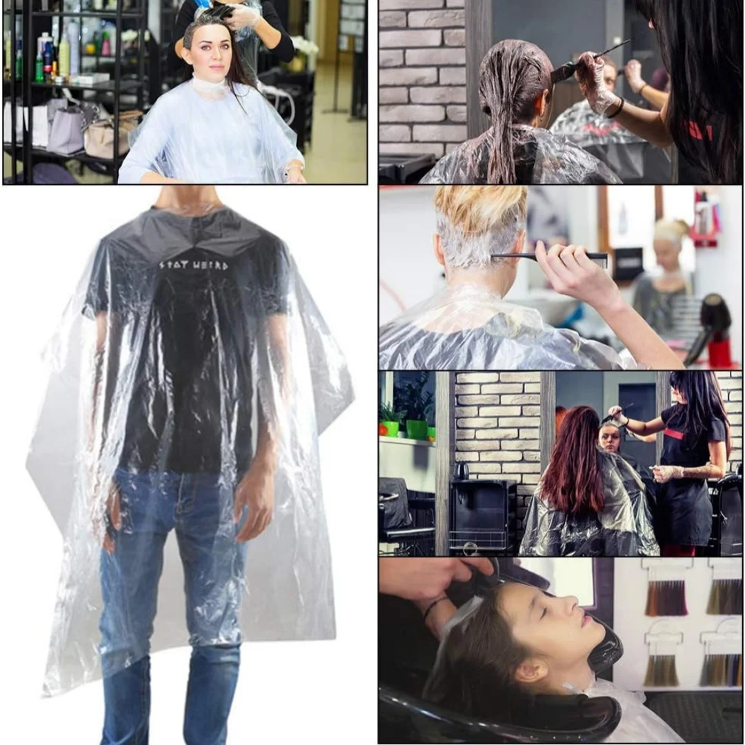 100 pièces jetable barbier coupe de cheveux Cape Transparent Salon de coiffure impermé...