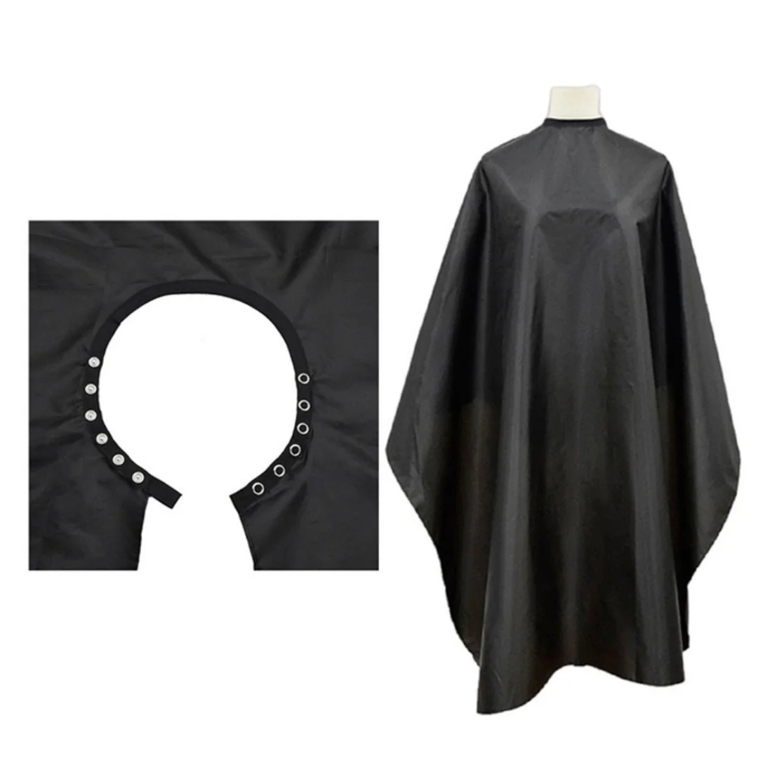 Cape de coiffure noire anti-salissure avec col et boucle, pour salon de coiffure, capes de coiffure