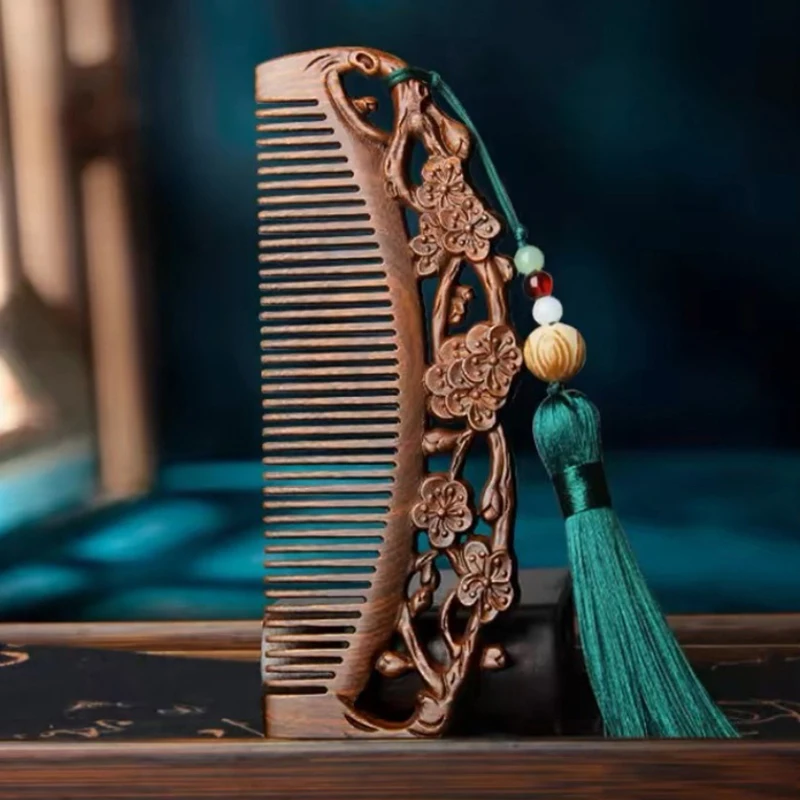 Peignes en bois de santal naturel, bois massif, sculpture exquise, ...