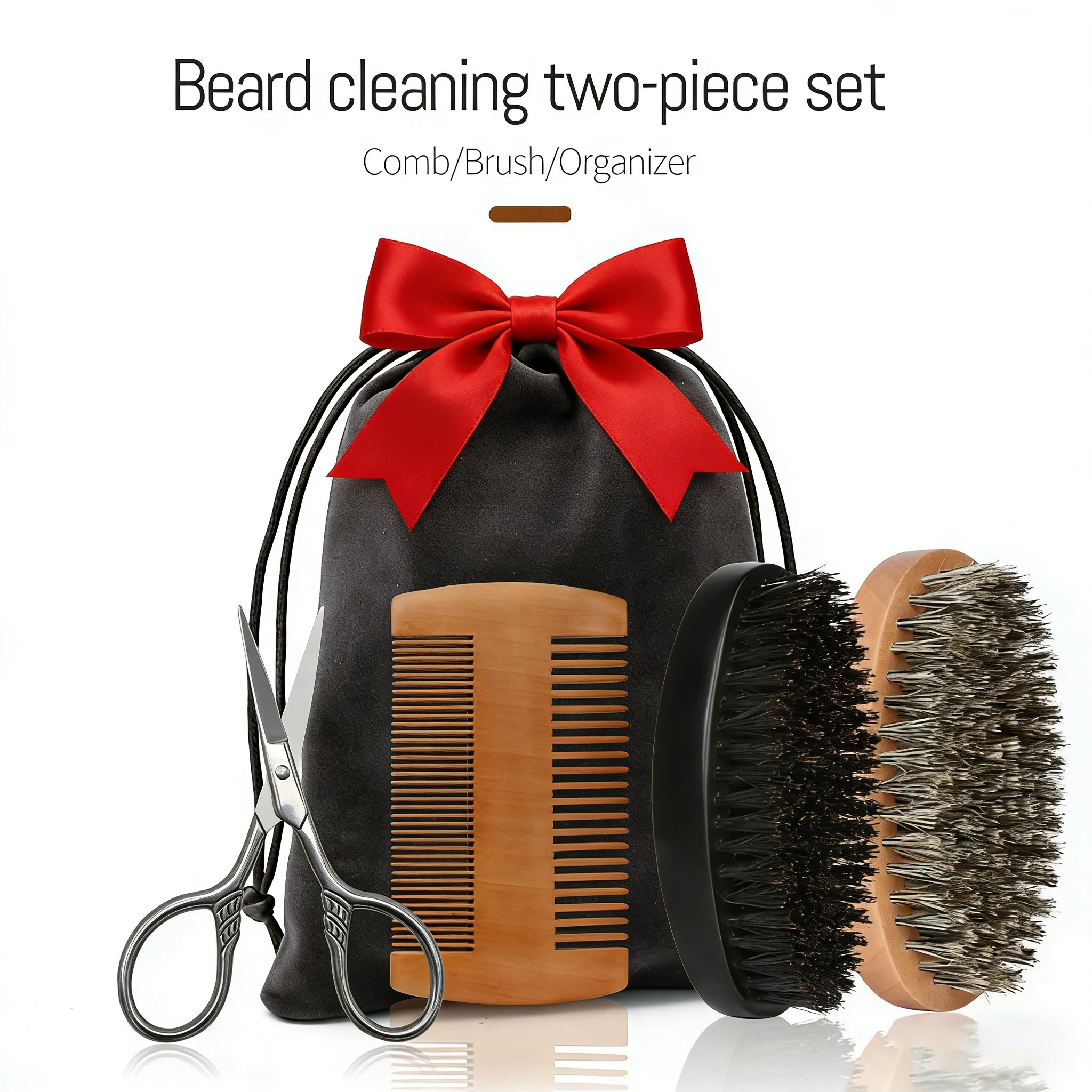 Ensemble de soins de la barbe pour homme en trois pièces : brosse à barbe + peigne en ...