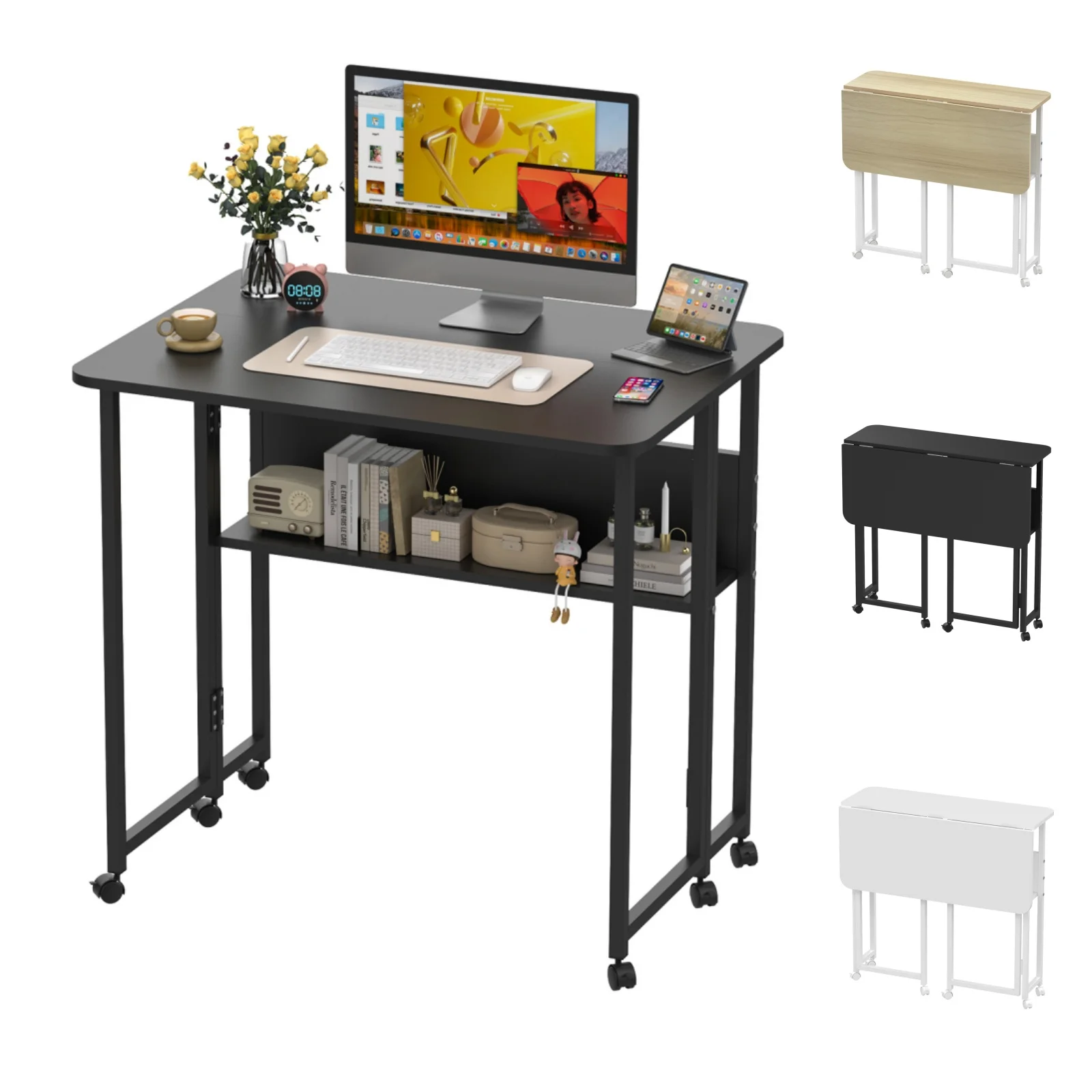 Table pliante, bureau pliable, bureau d'ordinateur avec roulettes, avec étagère, petit...