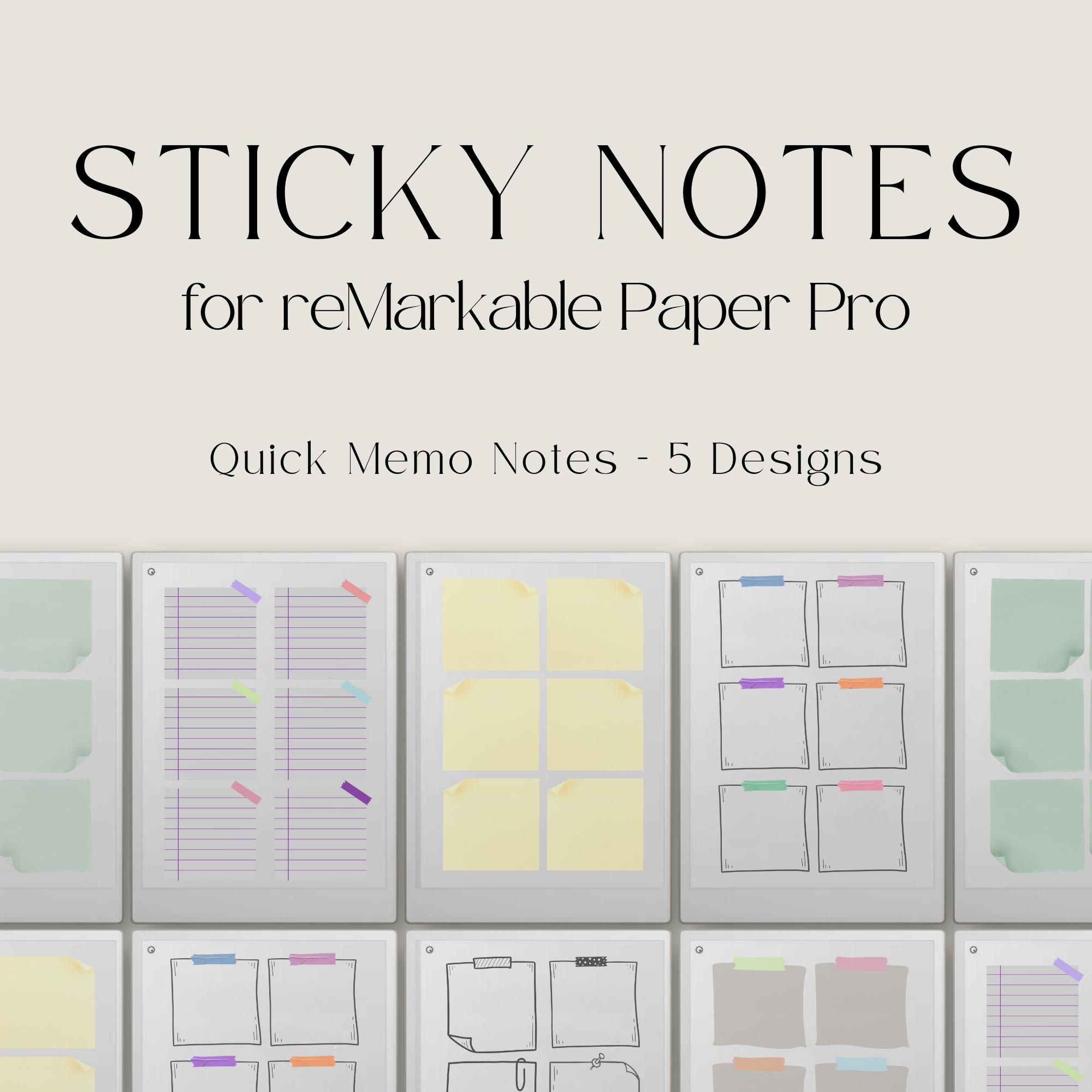 Pense-bête pour papier reMarkable Pro - Lot de 5 modèles de notes pour mémo + Bo...