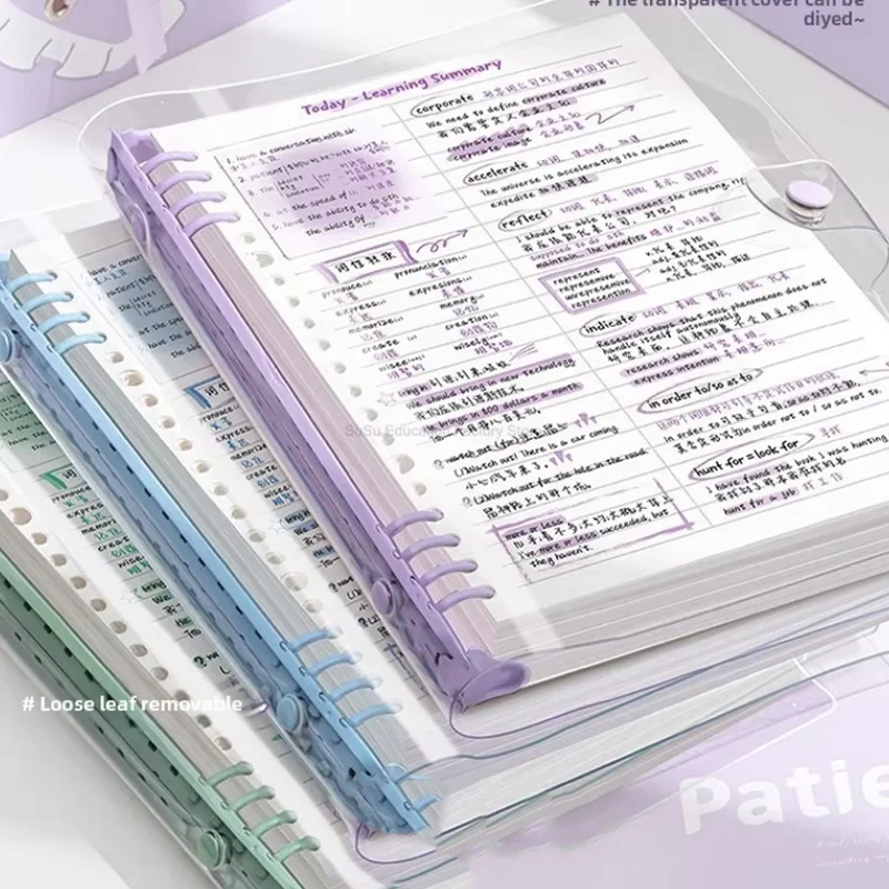 Cahiers A5 à feuilles mobiles en cuir souple Transparent, 60 feuilles, avec couvre-anneaux d&...