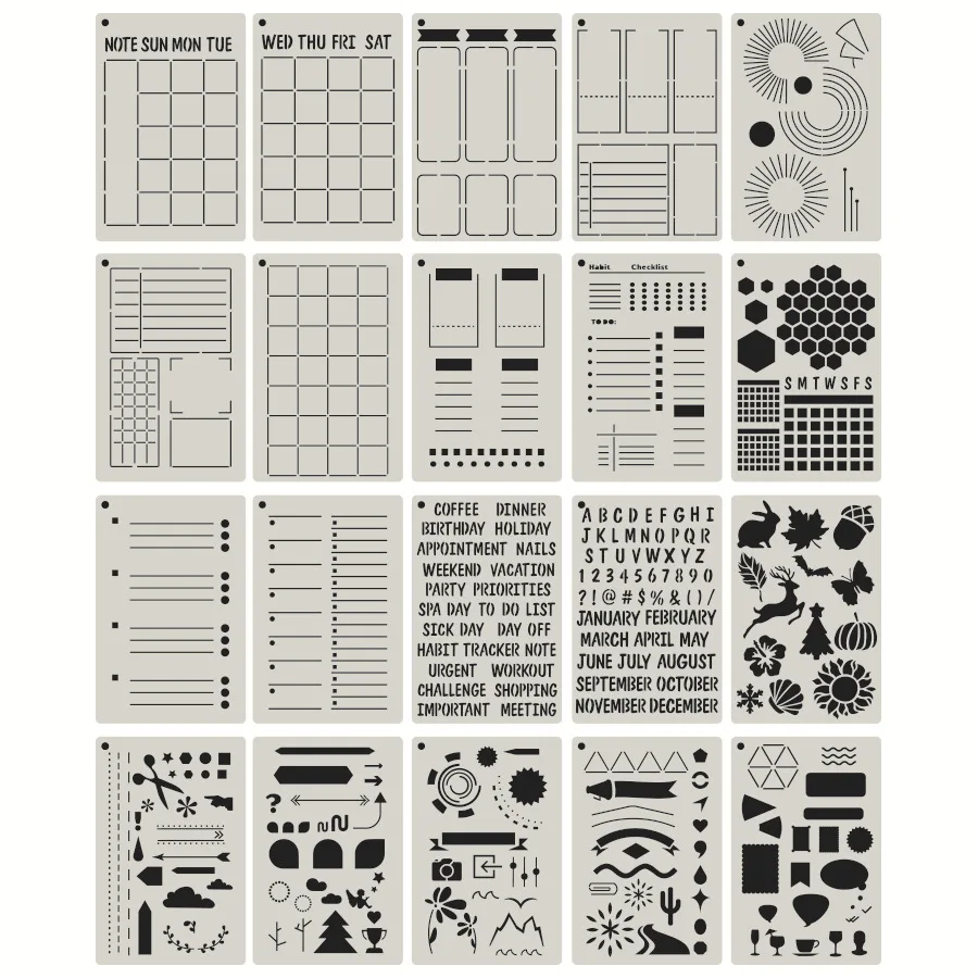 Ensemble de pochoirs de planificateur A5, modèles de Journal multifonctionnels pour dessin, S...