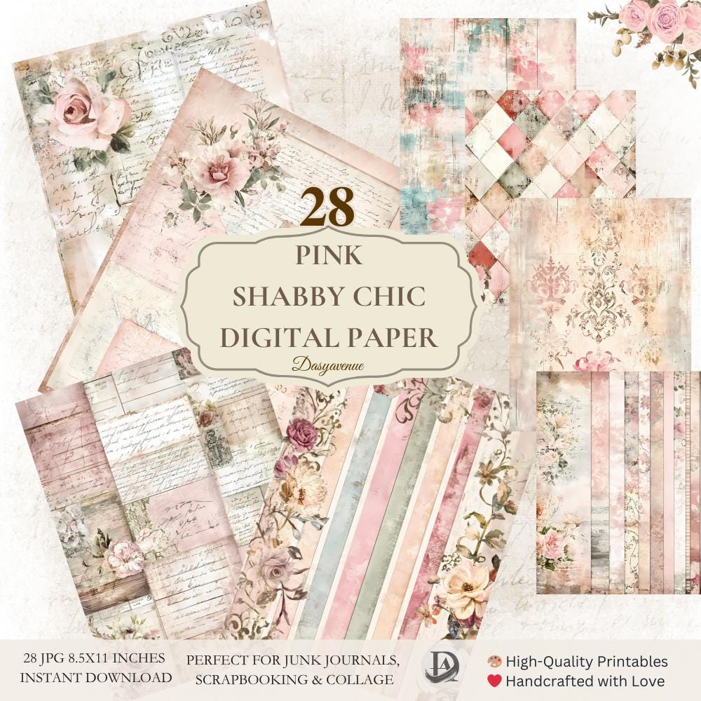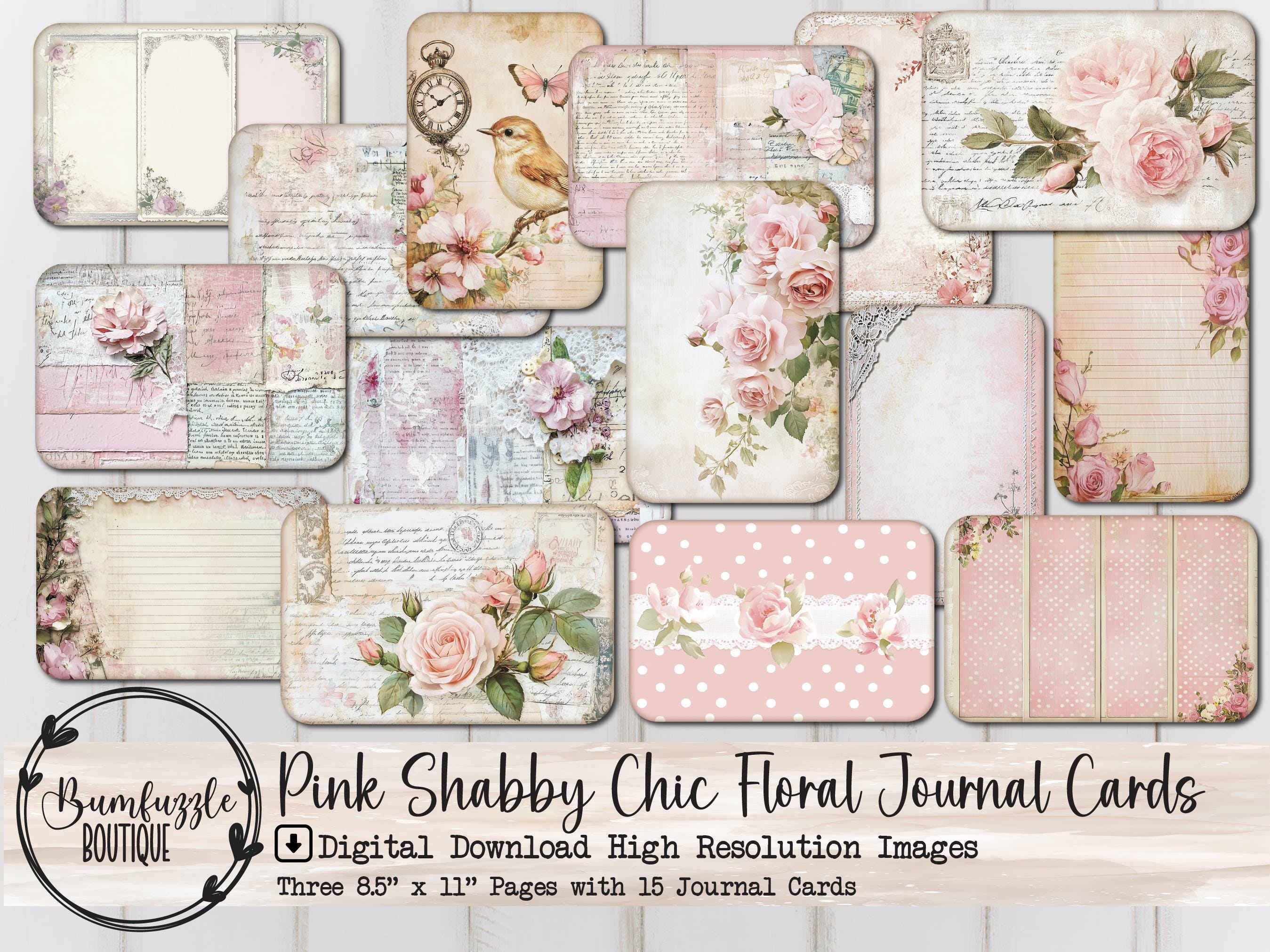 Éléments inclus - 3 pages JPG de cartes journal roses sur le thème du shabby ch...