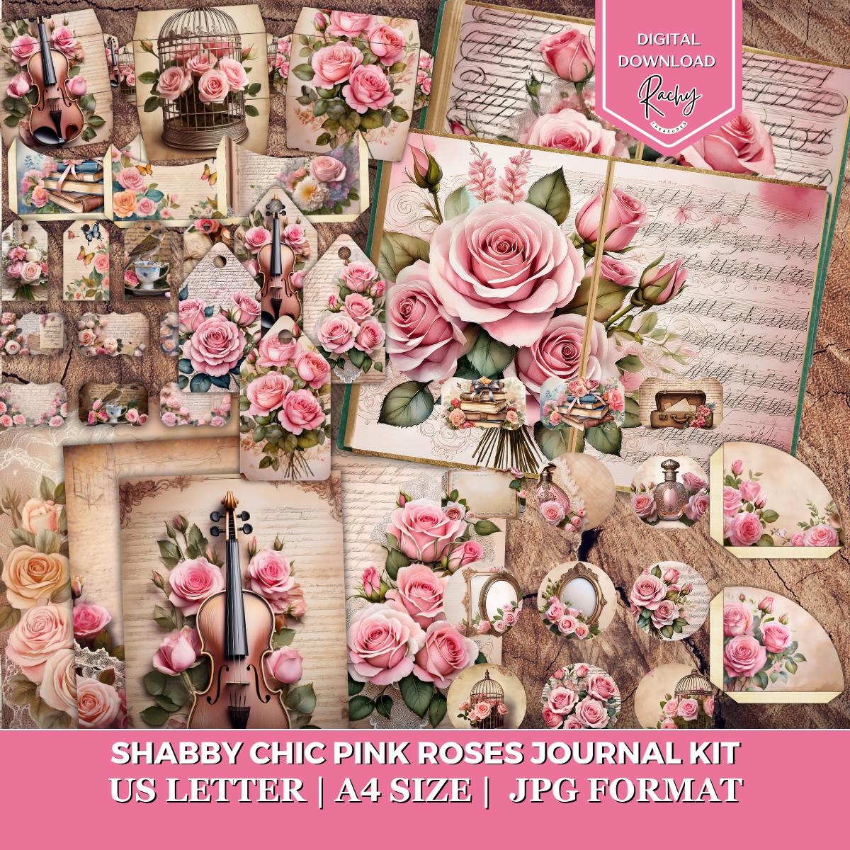 Kit de carnet de notes shabby chic roses roses, kit de carnet floral, coupe shabby chic chic, &eacut...
