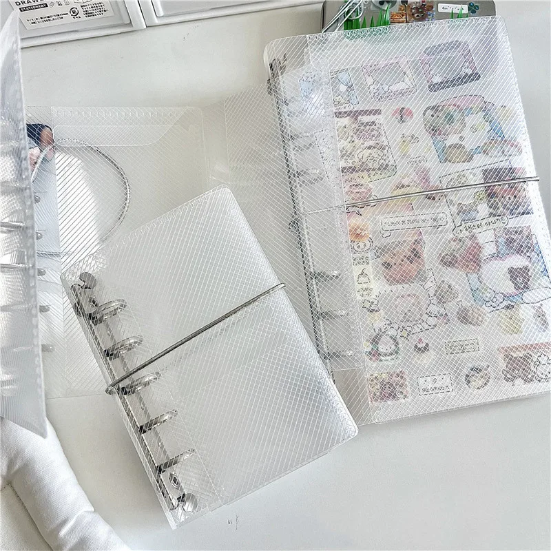A7 6 trous feuilles mobiles livre couverture transparence PVC cahier feuilles mobiles coquille trois...