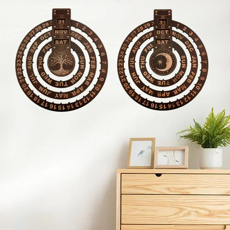 Calendrier mural en bois avec anneaux rotatifs, almanach vintage, anneau de personnalité, cal...