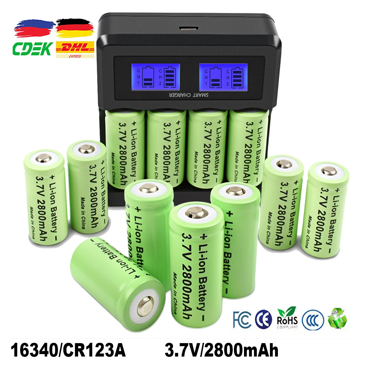 4/8 pièces 16340 Batteries rechargeables CR123A batterie 2800 mAh 3.7 V Li-ion lampe de poche...