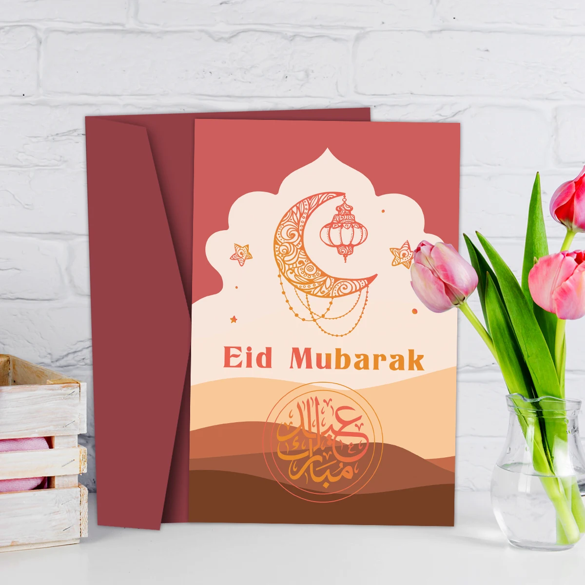 1 carte de vœux Eid Mubarak avec enveloppe pour amis, famille, collègues, cartes islami...