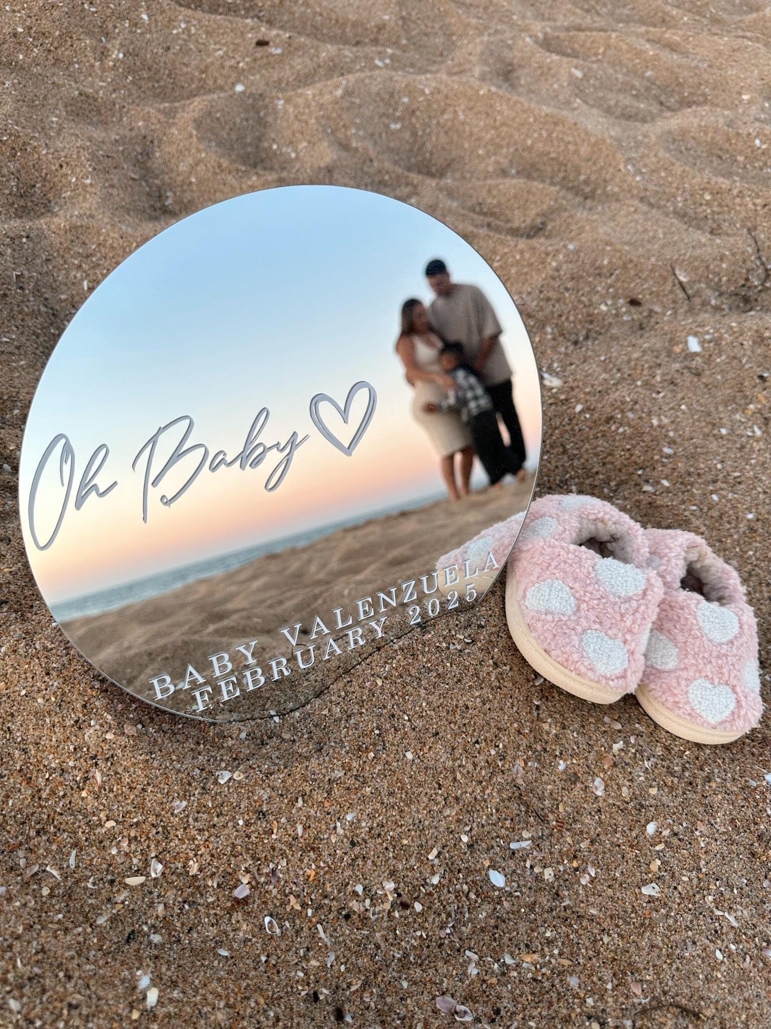 Accessoire photo pour faire-part de grossesse, miroir rond pour annoncer la naissance d'un bé...