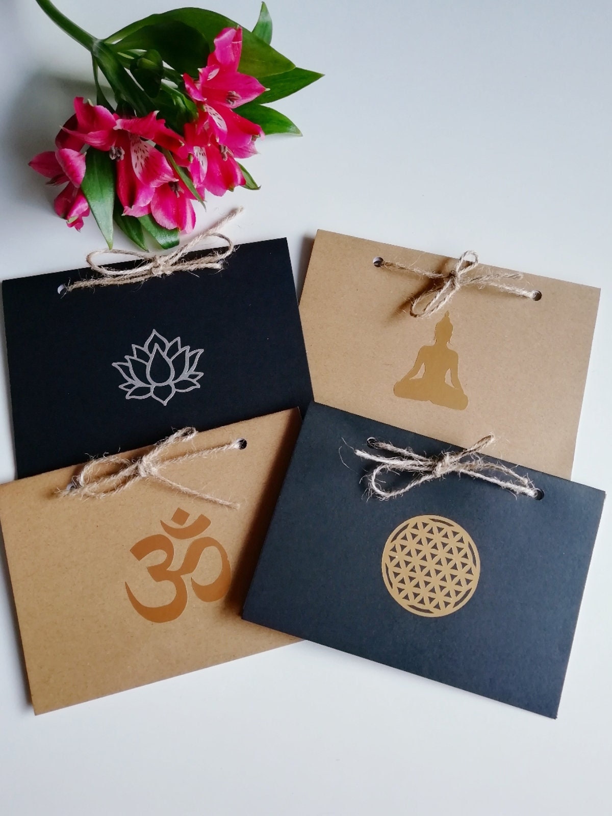 Ensemble de cartes de vœux Lotus et animaux de Style aquarelle, 24 pièces, avec envelop...
