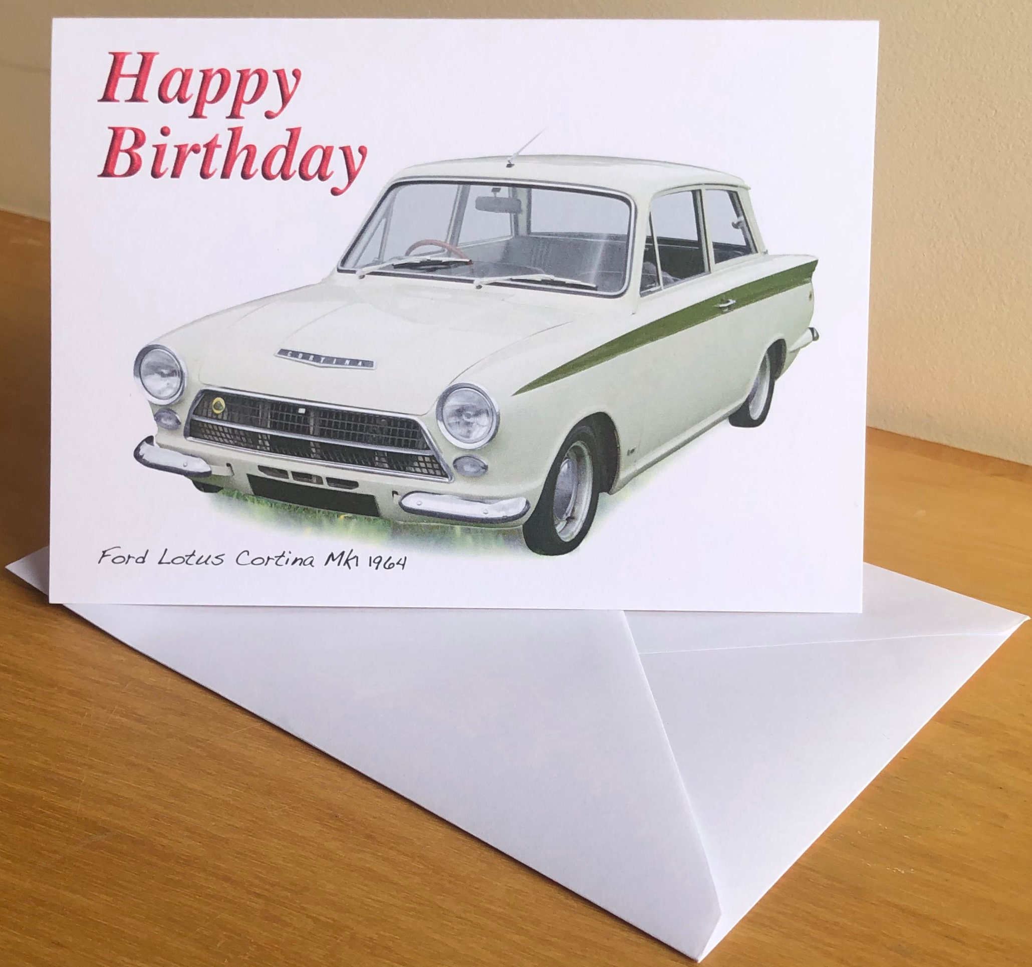 Carte de voeux Ford Lotus Cortina Mk1 1964 - 5 x 7 po. avec envelop...