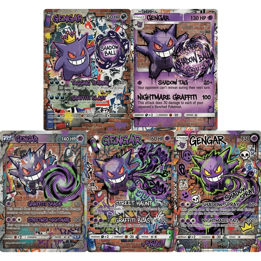 Cartes Pokemon Gengar, 5 pièces, Style Graffiti de rue, cart...